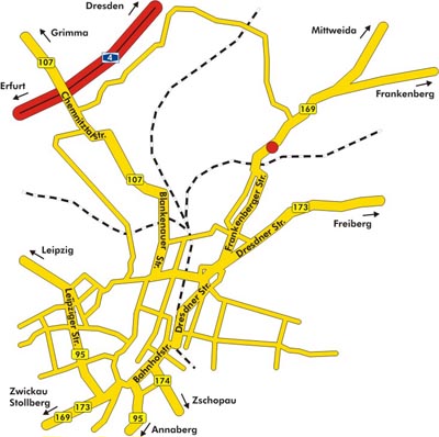 •B169 Richtung Frankenberg/Mittweida/Autobahnauffahrt Chemnitz-Ost