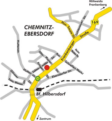 bis zur Haltestelle "Bahnhof Hilbersdorf" und von dort nur wenige Minuten zu Fuß
